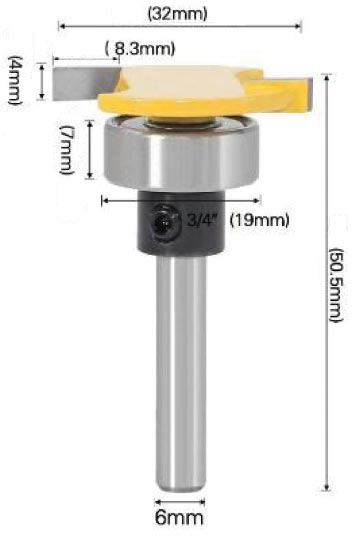 Selon les caractéristiques de votre affleureuse, ces fraise à rainurer sont également disponibles sur notre site en différent diamètres de queue soit en 6,35mm soit en 8mm.